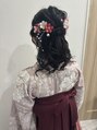 卒業式や謝恩会にぴったりの袴ヘアアレンジ♪トップはふんわりハーフアップに仕上げた上品スタイル。ゆるく巻いた毛先で柔らかさをプラスし、動きのあるシルエットに。和装でも今っぽく垢抜けたい方におすすめの大人可愛いアレンジです★