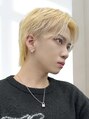 センターパート/ハイトーン/毛流れ/ウルフ/毛流れセンターパート/金髪/こぼれバング/ツーブロック/フェザーショート/フェザーパーマ