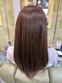 あまり赤味が出すぎ無いようにピンクを混ぜた、ピンクブラウンカラー。URUTSUYAトリートメントも同時に行い艶々に。