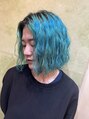 ブリーチにパーマをあてて、カラーをエメラルドグリーンにしたスタイル。ブリーチ毛でも酸性パーマでするとあてる事が可能となります。