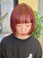 切りっぱなしボブ小顔カットグレージュチェリーレッド