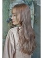 顔周り、表面を中心にレイヤーを入れたアイロン巻きしやすいベース。透明感のあるパールベージュで外国人風に。(髪質によってブリーチが必要)柔らかく触りたくなるような艶カラー。