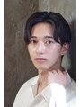 韓国風センターパートスタイル。ツーブロック・刈り上げで際はすっきりし、全体は重くカットしています。根元の立ち上げ、毛先の流れをパーマで作り、セットしやすくしたコンマヘアスタイル。