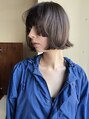 切りっぱなしボブに、顔まわりにステップを入れたスタイル。ステップの長さは骨格に合わせ絶妙に調整し小顔になるようデザインしています。28ミリのコテでニュアンスパーマのようにスタイリングしました。くすみブラウンで髪の毛が柔らかくみえる色に*