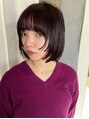 ダブルケアカラーをし暗くても透明感のある色味に*パープルな色味がほんのり感じるアッシュカラーです。顔まわりにポイントでプツッとデザインしました。伸ばしかけのボブでも飽きないようデザイン提案します*