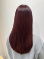 深みのあるボルドーカラーに、美髪フィルムトリートメントをプラス。カラーの色持ちと艶感を高めて、まとまりのある質感に◎乾燥やパサつきが気になる方にもおすすめの組み合わせです!(髪質改善/縮毛矯正/ヘッドスパ/酸性ストレート/白髪ぼかし)