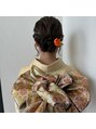 着物に合わせたダウンスタイルのまとめ髪。成人式、結婚式の参列でも人気の定番のヘアセット。金箔もプラスして今どきっぽさを。[ヘッドスパ/ハイライト/キッズカット/学割U24/インナーカラーも人気]