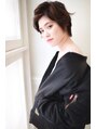 アレンジしやすいようにカットしています。かき上げた前髪が大人モードなスタイル。ダークカラーでさらに大人っぽく。