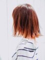 切りっぱなしの外はねボブスタイル!ドライな質感に仕上げることで、ラフさが出ます!そして今っぽいこなれ感もでます!今流行りのシースルーバングもおすすめです! さらにオレンジ系カラーで元気な印象になります!