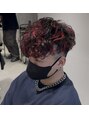 メッシュブリーチ 赤系カラー なみ巻きパーマ