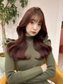 韓国ヘア/くびれヘア/前髪あり/顔まわりカット/ピンクブラウン