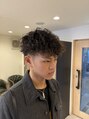 サイドからバックにかけて刈り上げ、マッシュベースのスタイルを波巻きで仕上げました!さっとグリースをつけてスタイリングしてます!