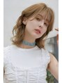 顔まわりにレイヤーで軽さを出しカラーはハイトーンのベージュで柔らかく。毛先をゆるく32ミリのコテで巻いて優しい雰囲気を出しています。