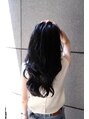 カラーは、ブルーブラックに染めて深みを。トリートメントはoggiotoプレミアムで質感をツヤツヤにしました。ハイレイヤーをいれた個性派スタイル