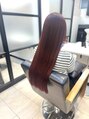 秋冬におすすめなからーの1つのボルドーカラー。毛先は元々ブリーチの履歴があり塗り分けてカラーしました。真っ赤で派手になり過ぎないよう深みのある色に調合しました。オッジィオットプレミアムトリートメントでブリーチ履歴があるとは思えない艶髪に。