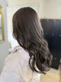 ブルーベージュカラーにoggiottoプレミアムトリートメントをする事で、ロングでもひときわツヤツヤな質感を作れます。内側から栄養をしっかり入れると巻いた時もハリとツヤがでるのでおススメです。