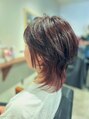 スタンダードウルフにインナーカラーをしたものです。くせ毛を活かしたウルフを希望されました。ウルフはくせ毛があるとよりその方にフィットします。