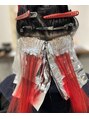ボブのクラゲです。前回と同じ様にという事で、メンテナンスカット&カラーです。伸びた分はブリーチをしますが、前回二回だったものを一回でというご希望でしたので、なるべく抜ける様にすることの工夫と根本の赤と既染部の赤の配合を変えます。