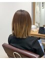 バレイヤージュ履から、塗り分けでなるべくダメージレスにブリーチ◎ほんのり紫味とほんのり茶味を混ぜた、上品なボルドーカラーカットはあご下2cmの切りっぱなしボブに