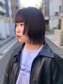 ショート・ミディアム、パーマスタイル、小顔に見せる前下がりボブ、流れやすい斜めバング、ツヤ・透明感カラーが得意☆一番お客様に似合うヘアをご提案☆落ち着いた黒髪でも可愛いヘアスタイルに☆【aimi】