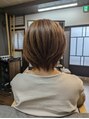 ショートボブ ベースをしっかり作り毛量調節 毛流れを作り ウィービング ベージュでオンカラーして、白髪が目立たなくなります。