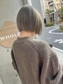 ブリーチを2回してオリーブがかったホワイトベージュをのせたボブスタイルです。しっかり明るめのヘアカラーはシンプルなファッションに合わせてもおしゃれな印象にしてくれるのでおすすめです◎