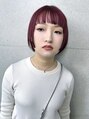 コンパクトなミニボブです。顔まわりにどくりつの毛束をデザインのポイントにカラーはピンクラベンダーで鮮やかな印象にしています。カラーはブリーチはせずに2回重ねてカラーすることで割としっかりした色味の表現としています。