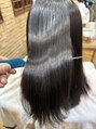 柔らかくツヤ感のある仕上がりのトリートメント矯正がおすすめメニューです!エイジング毛でちりついた髪が気になるお客様はレブリン酸でダメージ軽減しながら滑らかで潤いのある仕上がりに!