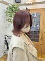 切りっぱなしボブのブリーチなし艶髪レッドカラー
