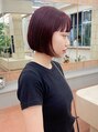 ボブ ミニボブ ブリーチあり ダブルカラー 名古屋 栄 矢場町 ショートボブ 赤髪 チェリーレッド ピンクカラー ラベンダーカラー ラベンダーアッシュ 暖色系カラー 前髪 シースルーバング ぱっつん サイドバング ショート トリートメント