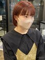 ミニボブ×オレンジブラウンで柔らかい印象に♪ほんのりピンクを入れる事で、全体に柔らかさを出しています◎ぷつっとしたミニボブと色味カラーはおしゃれで相性抜群です!是非一度ご相談下さい♪