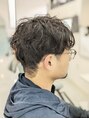 スパイラルパーマにブリーチ1回のハイライトでシルバーグレー、とにかくかっこいい色です。ブリーチの抜け具合いでできない場合もありますのでご相談ください。