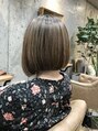 シンプルな前下がりのボブです♪ケアブリーチでハイライトを全体に入れてからイルミナカラー☆いつもと一味違うカラーをしたい時にオススメです!ハイライトなら、褪色してきてもキレイに楽しめます!髪型は《ブックマーク》しておくと便利です♪