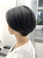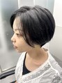 黒髪カラー、ブルーブラックカラーでハンサムショートにしました。大きめのアクセも◎甘すぎない大人の雰囲気で伸びてきても重くなりすぎないよう、すきバサミを使わないカットで再現性バツグンです!