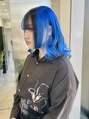 お客様のデザインカラーを任せていただきました!ブリーチして、鮮やかな発色になるようにヘアマニキュアのブルー、ポイントでブラックを入れました♪場所や量などお気軽にご相談ください!オンリーワンなデザインカラー可愛くします♪