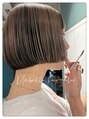 陰影が可愛いアンブレラカラー。表面だけの少ないブリーチでヘアカラーを楽しめます!少し前上がりのコンパクトなボブが今の気分。
