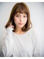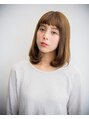 ちょうど肩に乗っかる長さのlobです。肩の上でワンカールさせることで、不思議な安定感が生まれております。眉の上でワンカールさせた前髪も潔くて可愛いです。