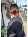 ブラックとインナーレッドウルフカットで少し個性感強く#インナーカラー#デザインカラー#ウルフカット#京都インナーカラー#京都ウルフ