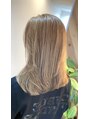 ハイライトダブルカラー細めかつ多めにハイライトを入れ、全体的に明るくしアッシュベージュにしています。ダメージを抑えながらハイトーンにしています。