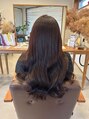 ラベンダーカラーはツヤ感と透明感のいいとこどりカラーです!仕上げは32ミリのコテ巻き仕上げ。シンピュルテオイルをつけて粗めのコームでとかして大きめのゆるいカールを作っています。