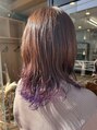 髪質改善カラーでワインレッドに。紫感のあるレッドなので大人可愛いスタイルにとても合います◎カットは丸みのあるショートボブに。襟足は首筋に沿うようにカットしているので乾かすだけで決まるスタイルです。
