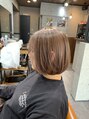 退色して明るくなってしまったハイライト履歴有りのベースを活かして薄めのピンクベージュに♪カットはお手入れがしやすい丸みのあるショートボブに!