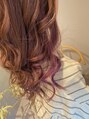 全体ツヤツヤピンクとインナーにキレイめパープルで大人可愛いstyleです♪巻き髪する事でお色がさらに立体的になります!大切なイベント前などにヘアセットなどもさせていただいておりますので、お気軽にお問い合わせ下さい♪