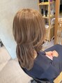 細めハイライトをたっぷり入れた綺麗めミルクティベージュカラーの内巻きレイヤーstyleです♪頭浸浴とトリートメントで地肌からすっきり潤い整いました!