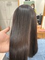ダメージを最小限に抑えた縮毛矯正と髪質改善トリートメントの組み合わせ。硬くなりやすいストレートも、自然で柔らかな質感に。