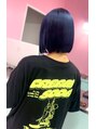 ハイトーン/ネイビーブルー/切りっぱなしボブ/ショートボブ