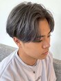 センターパート ブリーチ シルバー マッシュ ハイトーン