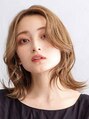顔周りレイヤーとフェイスラインの大きなSカールがポイントのミディアムスタイルです。前髪はフワッとかきあげて、抜け感と透明感のある仕上がりに。