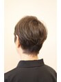 ショートレイヤー。襟足のフィット感で首が長く細く見えるように。タテ、ヨコ、ナナメ、逆のナナメのさまざまな引き出し方を組み合わせたショート。