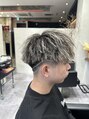 マッシュツイストホワイトハイライト。そこにプラスで刈り上げにラインアートでポイントオシャレに!